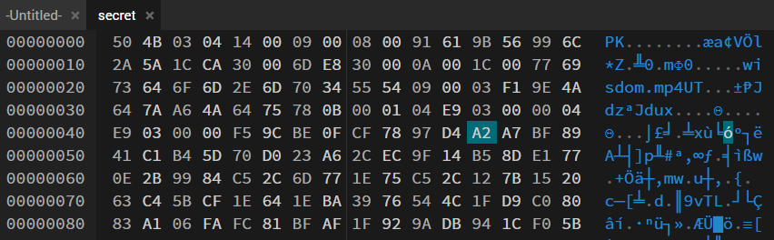 Based on the header of the secret file, we can determine that it is a zip file (the remaining files also have the correct format).