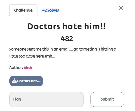 This challenge provided hint to the Doctor Hate Him challenge, and I'll discuss that later. Here, they have given the flag.