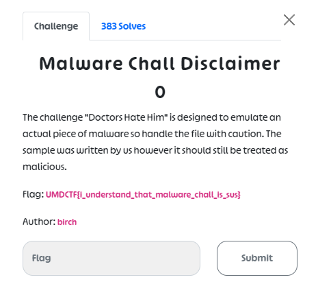 UMDCTF{i_understand_that_malware_chall_is_sus}