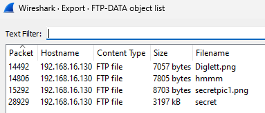I have checked both strings and filtered the captured data, but I haven't found anything other than the files retrieved from FTP.
